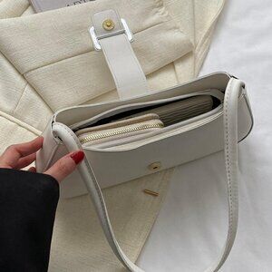 White Casual Women's Belt Buckle Handbag Summer Shoulder Bag