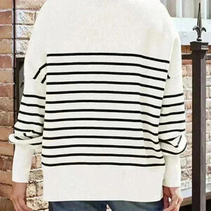 White Casual Women's Crew Neck Long Sleeve Striped Design Pullover Sweater