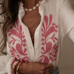 White Casual Womens Delicate Ruffle Hem Semi-Sheer Printed Blouse