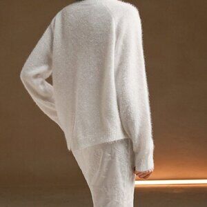White Casual Women's Elegant Sequin Floral Round Neck Loose Sweater