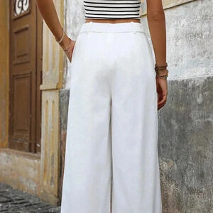 White Casual Women's High-Waisted Wide Leg Pants With Pockets
