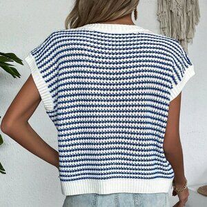 White Casual Women's Knit Mix Striped Round Neck Loose Knit Top
