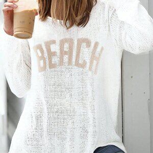 White Casual Women's Loose Letter Print Long Sleeve Knitted Pullover