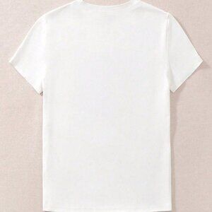 White Casual Women's Make Heaven Crowded Embossed Loose Short Sleeve T-Shirt