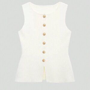 White Casual Women's Metal Button Open Front Sleeveless Jacket