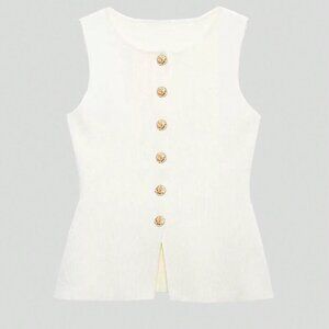 White Casual Women's Metal Button Open Front Sleeveless Jacket