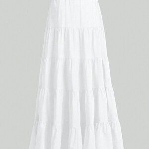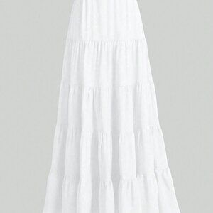 White Casual Women's Multi-Layered Ruffle Hem Long Skirt