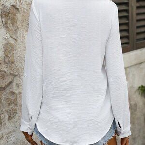 White Casual Women's Pocket Button Front Long Sleeve Shirt