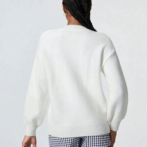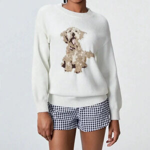 White Casual Women's Round Neck Dog Graphic Pullover Sweater