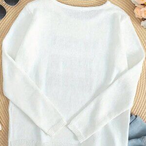 White Casual Women's Round Neck Long Sleeve Side Split Letter Knitted Sweater