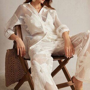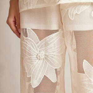 White Casual Women's Set French Romantic Hollow Embroidery Floral Outfit