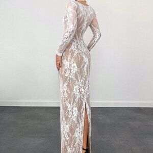 White Casual Women's Sexy S-Shape Lace Long Sleeve Cupped Bustier Tight Fitting