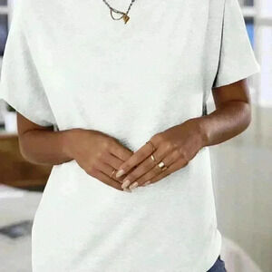 White Casual Women's Solid Color Asymmetric Neck Batwing Short Sleeve T-Shirt