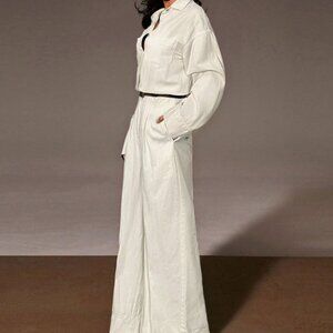 White Casual Womens Surplice Neck Lantern Sleeve Two Layer Hem Belted Dress
