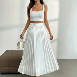 White Casual Women's Tank Top And Pleated Skirt 2-Piece Set