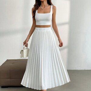 White Casual Women's Tank Top And Pleated Skirt 2-Piece Set