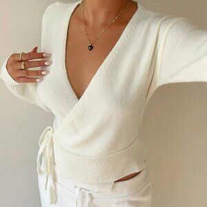 White Casual Women's Versatile Wrap Tie Front Cardigan