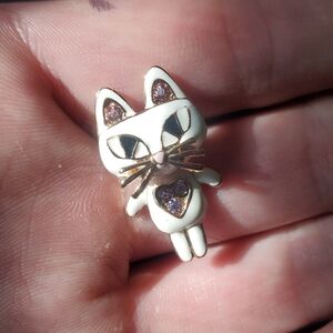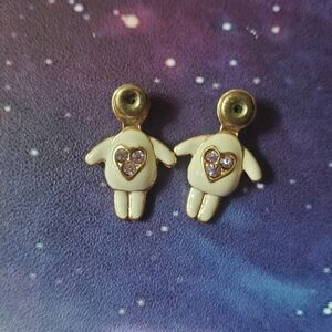 Cat Earrings that hang front and back. white Cats with hearts on the chests.