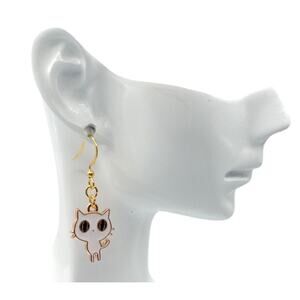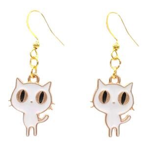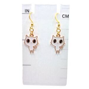 White Cat Earrings Gold Tone Spooky Cute Dangle Drop