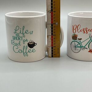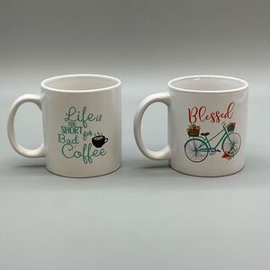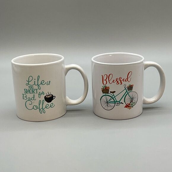White Ceramic Coffee Mug Set with Inspirational Designs