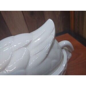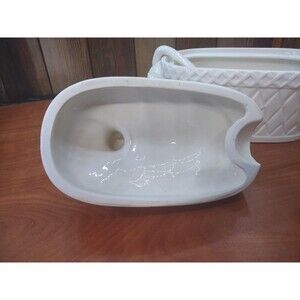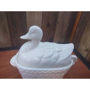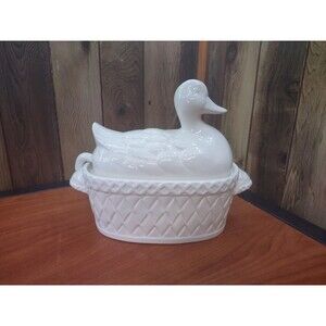 White Ceramic Duck In Basket Soup Tureen Pot Roast Stew Pot w/ Lid & Ladle
