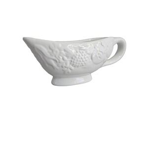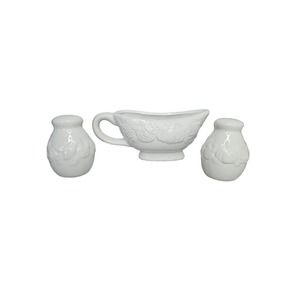 White Ceramic Gravy Boat Salt Pepper Shaker Set Thanksgiving Pumpkin Squash Fall