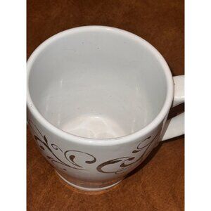 White Ceramic Mug With Brown Swirl Design By DesignPac Gifts 4.5" Tall 3.5" Diam