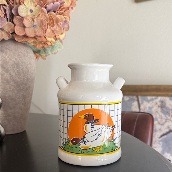Charming white ceramic vase featuring a playful duck design. Perfect for adding a whimsical touch to any room.