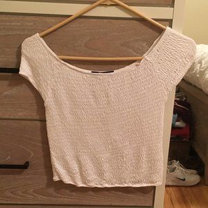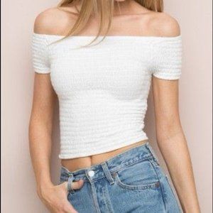 White ruched off the shoulder crop top from Brandy Melville. One size, fits size small. Lightly worn, in great condition!