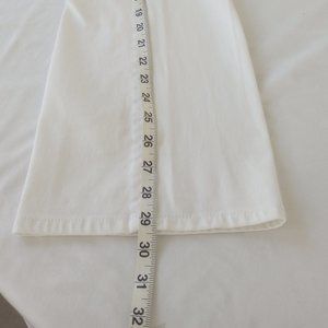 White Chico Jeans size 1 Short, zipper & button in front for closure, belt loops, 3 front pockets (one coin pocket) two back pockets with embroidered design, measurements inseam 29.5", waist 16.5", no rips tears stains