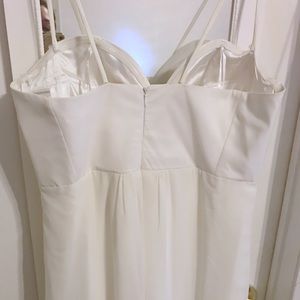 Gorgeous, elegant, comfortable and easy to wear. Made for all body types. Bodice has boning for support. Straps have been sewn in for added strength but can easily be removed without damaging the dress for a strapless look. Front slit to just above the knee. I added an additional layer of chiffon underneath the skirt to make it more full and flowy which was perfect for a beach wedding ๐๐๐