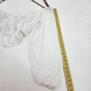 White Chiffon Swiss Dot Milkmaid Top Size L Lantern Sleeve Crop Ruched Bust