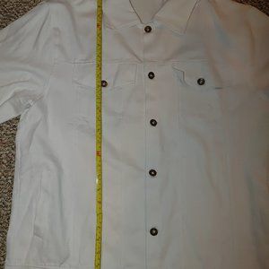 XXL China Denim jacket. Fits more like an XL, so check measurements. Very lightweight. Feels more like a shirt than a jacket, which is really cool. Pockets on front are fake.
