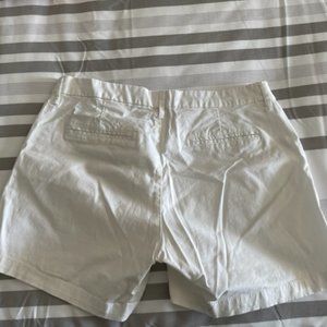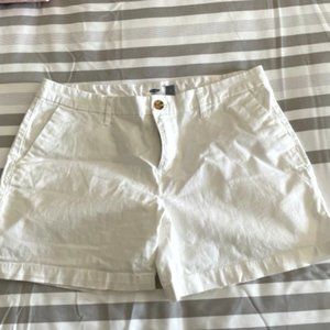 Size 8 White, Old Navy Chino Shorts with Pockets, 97% Cotton, 3% Spandex.