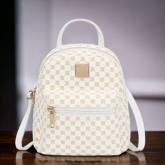 Elevate your style and stay organized with this white and brown design small backpack crossbody purse!
