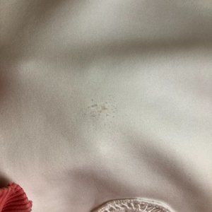 @novakinson So sorry I missed your comment! To be honest, I haven't been able to find the spots, but left this here as it's a reposhed item & I'm afraid I've just missed it! I've pulled it out of my closet again, looking to verify where those spots are and still can't locate them. What I CAN see is an area where there's some slight pilling on the front. I'm adding more recent photos to this listing so you can take a look if still interested!