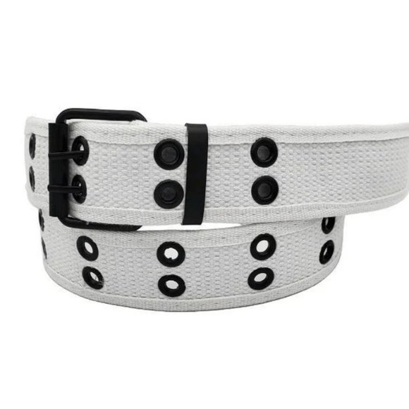 White Color 2 Holes Row Grommet Canvas Fabric Web Belt
