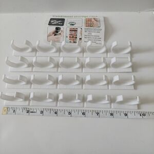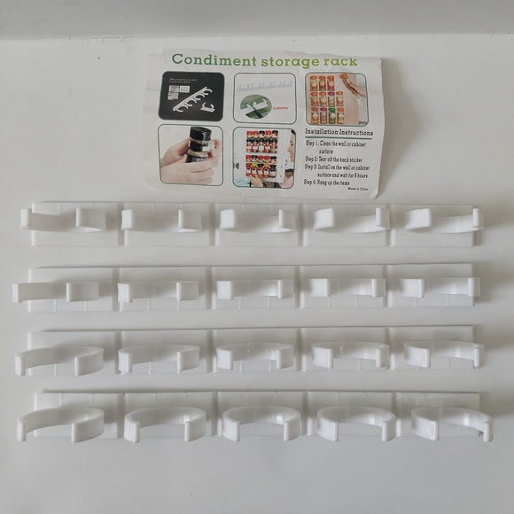 Organize your kitchen with this sleek white condiment storage rack. Perfect for keeping your spices and condiments neatly arranged and easily accessible.