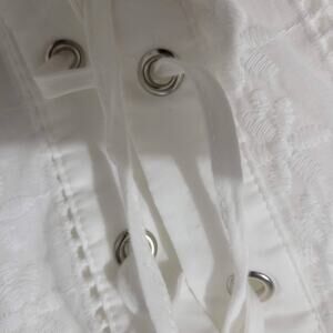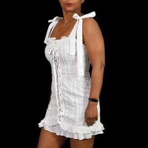 White Corset Dress Lace Up Bodice Mini Ruffle Cotton Embroidery Lace Size Medium