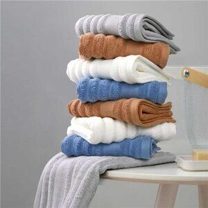 🧿Chic Ribbed Stripe Design: These classic white towels are the perfect match for any bathroom, a stylish ribbed stripe design that adds a touch of sophistication to every drying moment