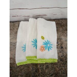 These white cotton hand towels feature durable embroidery and a vibrant floral design. The green polka dot trim adds a touch of charm for everyday use.