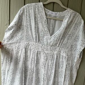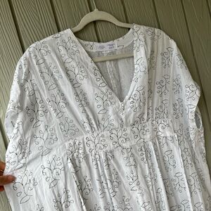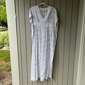 NWOT White Cotton Maxi Dress – One Size – Handprinted Vine Design – Lightweight Boho