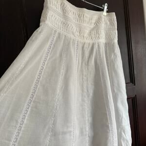 White Cotton and Lace A Line Eyelet Midi Skirt with Pleated Waistband | Medium
