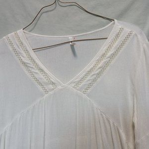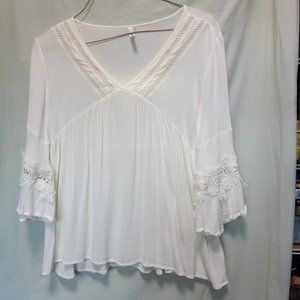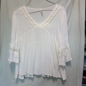 White Crepe Asymmetrical Embroidered Fluttery Top Medium