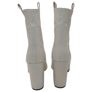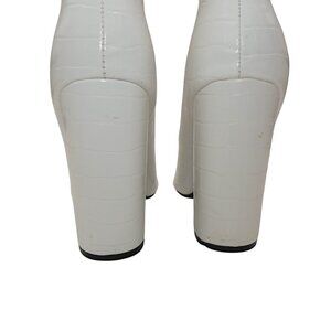 Turn heads in these fierce white croc-embossed ankle boots. Featuring a sharp pointed toe, chunky block heel, and side pull-tabs, these boots channel major boss babe energy. Whether you're dressing up a power suit or adding edge to a mini dress, these boots are the ultimate statement piece.