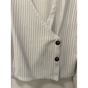 White Crochet Long Sleeve Cotton Blend Large V Neck Top