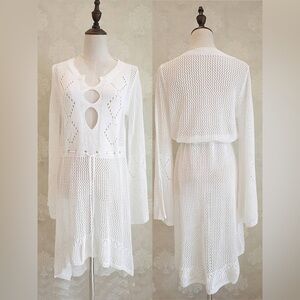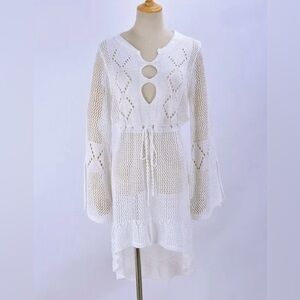 Stay stylish at the beach with this super cute white crochet swim coverup. Perfect for adding a touch of femininity to your beach or pool day. NWOT.