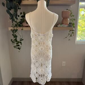 White Crochet Flower Midi Dress Open Knit Boho Beach Cover Up Small Y2K Beach