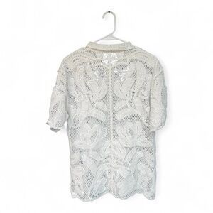Indulge in comfort with this elegant white crochet lace lounge set. Bottoms have a lined short.