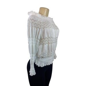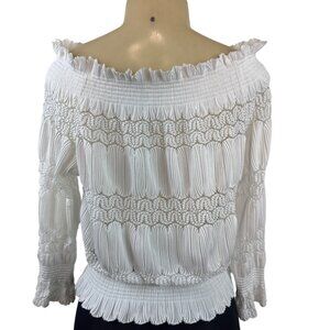 White Crochet Smocked Off-Shoulder Top By J.O.A. Los Angeles Blouse Sz P - New